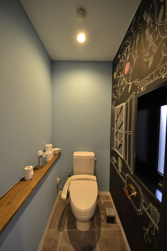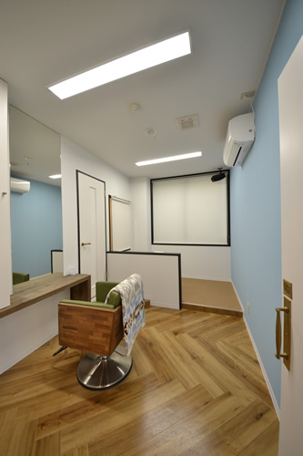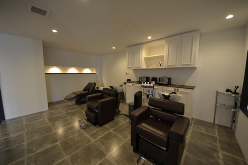所々にお客様をもてなすテョークアートも描かれ、どの空間も飽きの来ない楽しい雰囲気の美容室です。